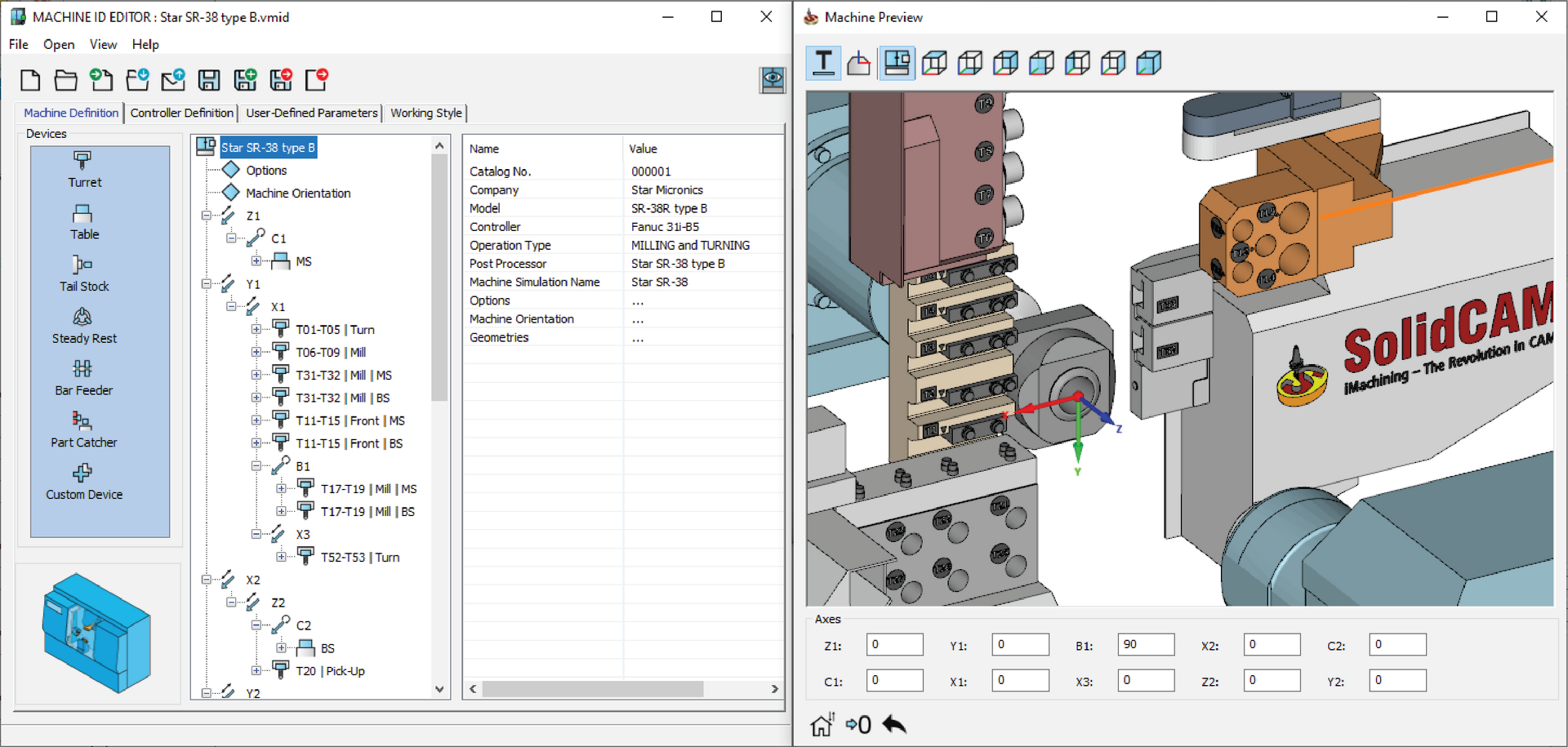 你可以在机床设置、刀具库、作业和基于机床模拟后处理数据的MCO中获得完整的机床预览体验。
